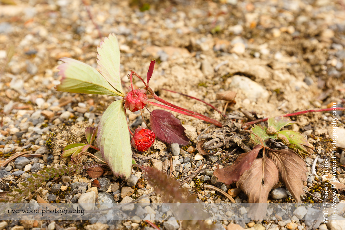 Unfortunately the floods from a couple of years ago destroyed an access bridge and a large section of trail at the start of the hike and so we had to detour down an old fire road for 2 km (each way). As a result the total length of hike was more than 17km, not the 14km it was listed as. The road wasn’t exactly beautiful, but at least there were wild strawberry plants in full ripe mode all along the road. This partially made up for the boringness of the road itself. We ate many many beautiful sweet berries that day!